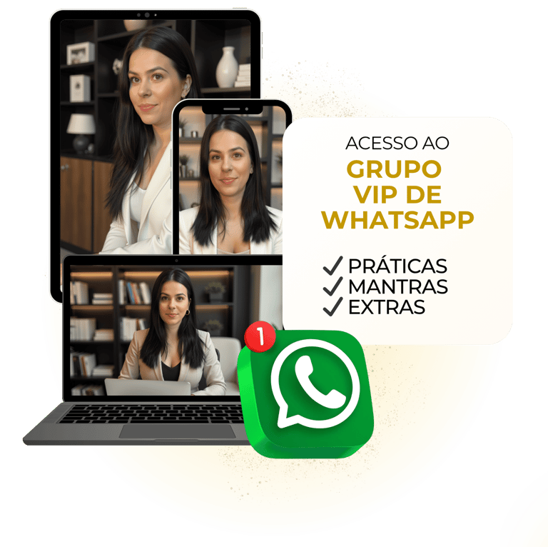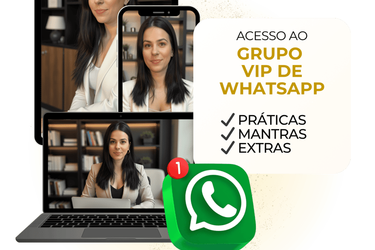Essa é uma mentoria por Whatsapp, profunda e transformadora, feita para mulheres que querem parar de repetir ciclos e começar a prosperar em todas as áreas da vida.